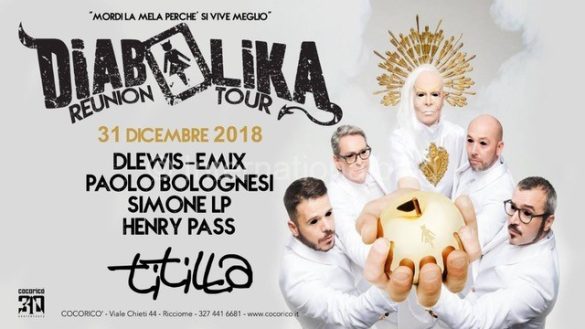 La prima data è prevista per la notte tra il 25 dicembre ed il 26 dicembre 2018 al Madam di Ferrara (via Padova 189, www.madamebutterfly.it), un party perfetto per bruciare un po’ di calorie ballando dopo la classica giornata di festa in famiglia. E’ già stato annunciato un altro party, tra l’altro in uno dei luoghi simbolo del clubbing italiano: Diabolika Reunion Tour il 31/12/18 fa ballare il Capodanno 2019 del Titilla, il privé del Cocoricò di Riccione (RN).